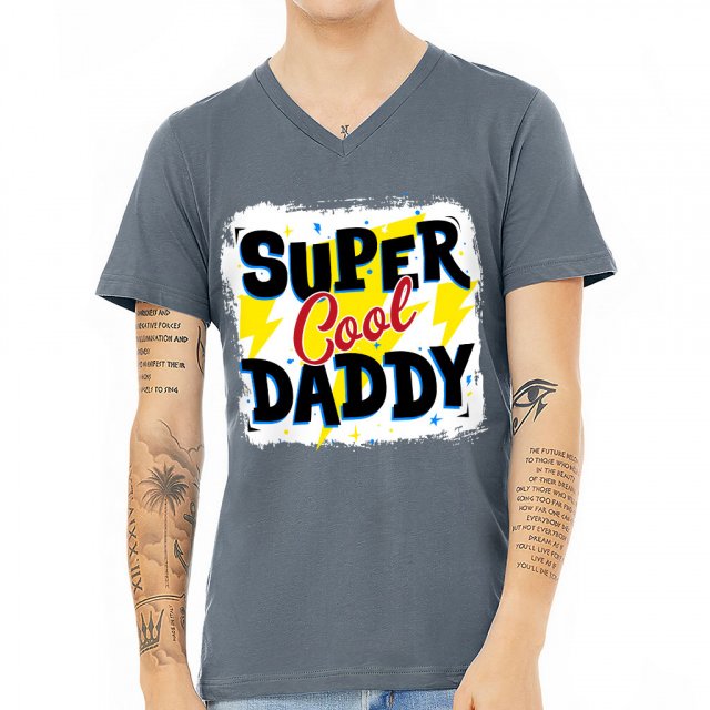 Super Cool Daddy V-Neck T-Shirt – Family T-Shirt – Art V-Neck Tee