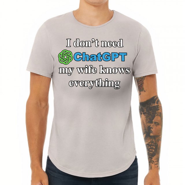 My Wife Knows Everything Curved Hem T-Shirt – Print T-Shirt – Word Print Curved Hem Tee