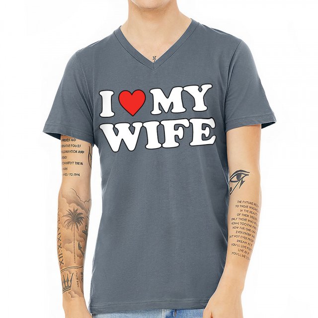 I Love My Wife Short Sleeve T-Shirt – Themed T-Shirt – Heart Short Sleeve Tee