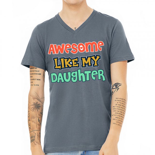 Awesome Like My Daughter V-Neck T-Shirt – Art T-Shirt – Themed V-Neck Tee