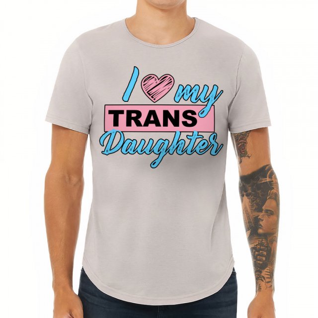 I Love My Trans Daughters Curved Hem T-Shirt – Heart T-Shirt – Word Art Curved Hem Tee