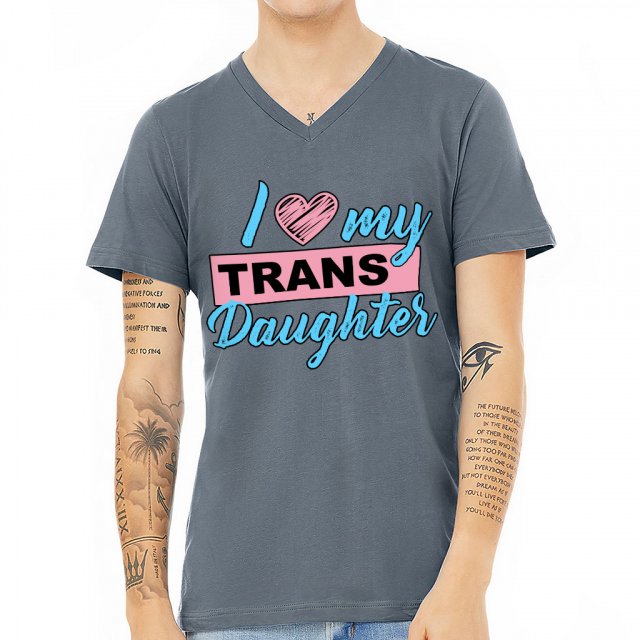 I Love My Trans Daughters V-Neck T-Shirt – Heart T-Shirt – Word Art V-Neck Tee