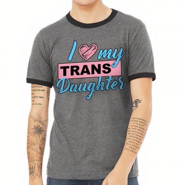 I Love My Trans Daughters Ringer T-Shirt – Heart T-Shirt – Word Art Ringer Tee