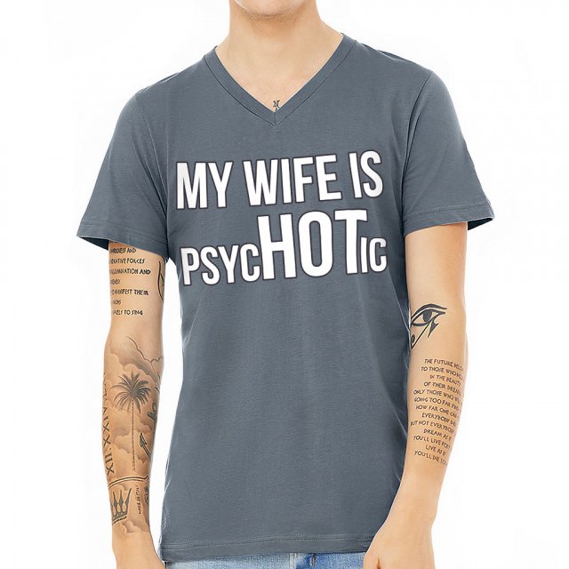 My Wife Is Psychotic V-Neck T-Shirt – Funny T-Shirt – Family V-Neck Tee