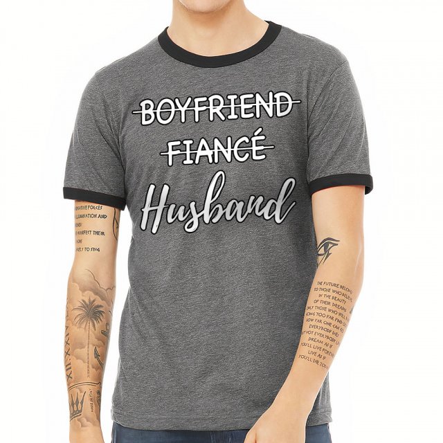 Boyfriend Fiance Husband Ringer T-Shirt – Word Print T-Shirt – Phrase Ringer Tee