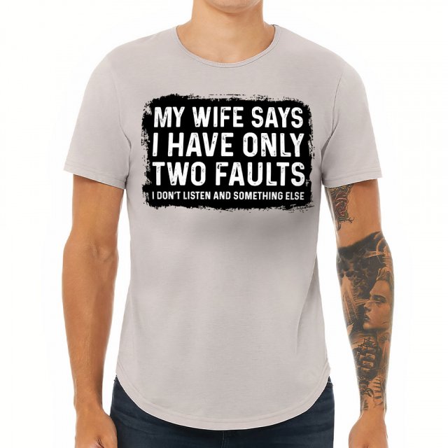 I Have Only Two Faults Curved Hem T-Shirt – Phrase T-Shirt – Funny Curved Hem Tee